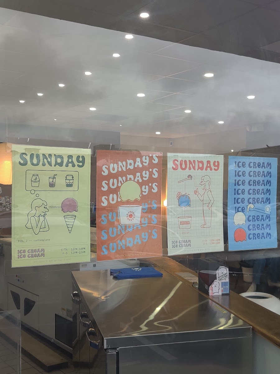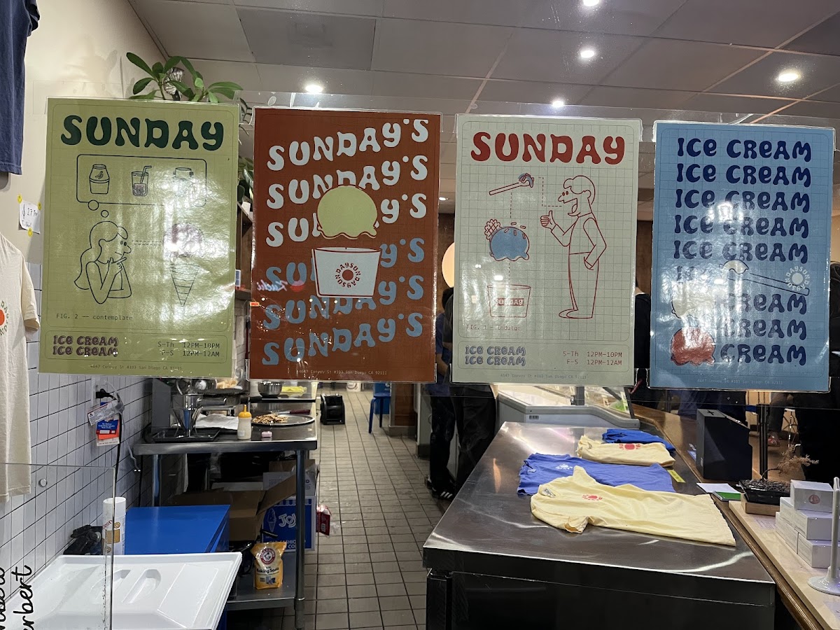 Besides ice cream, the menu also offers branded merchandise including adult and kids' tees.